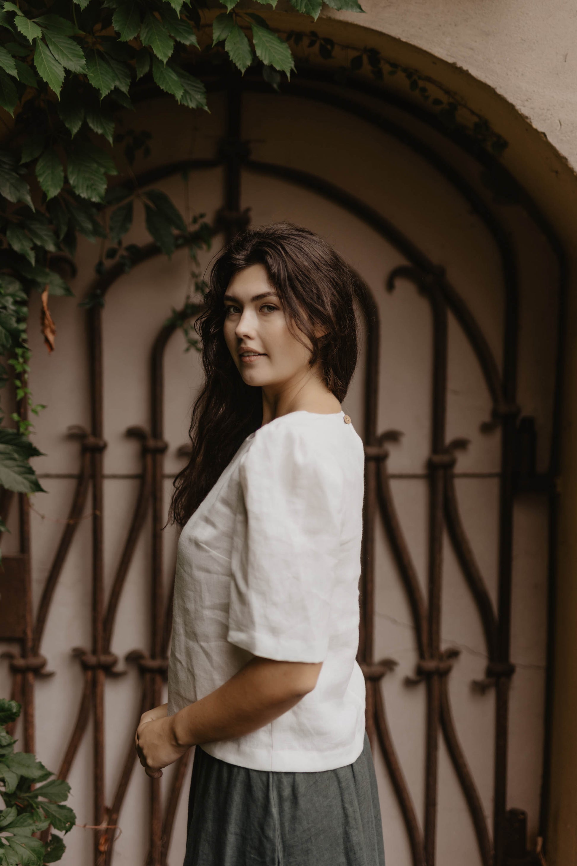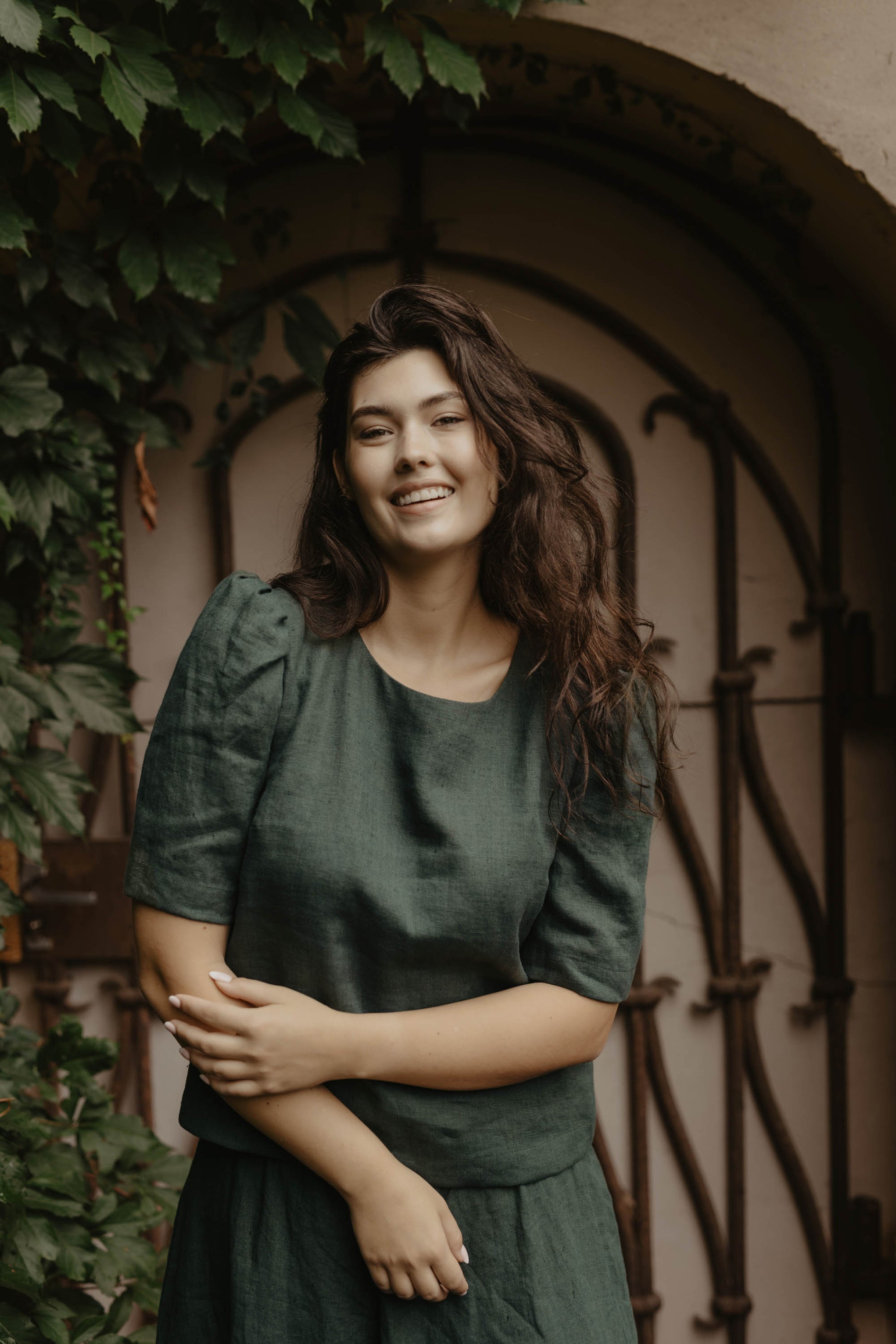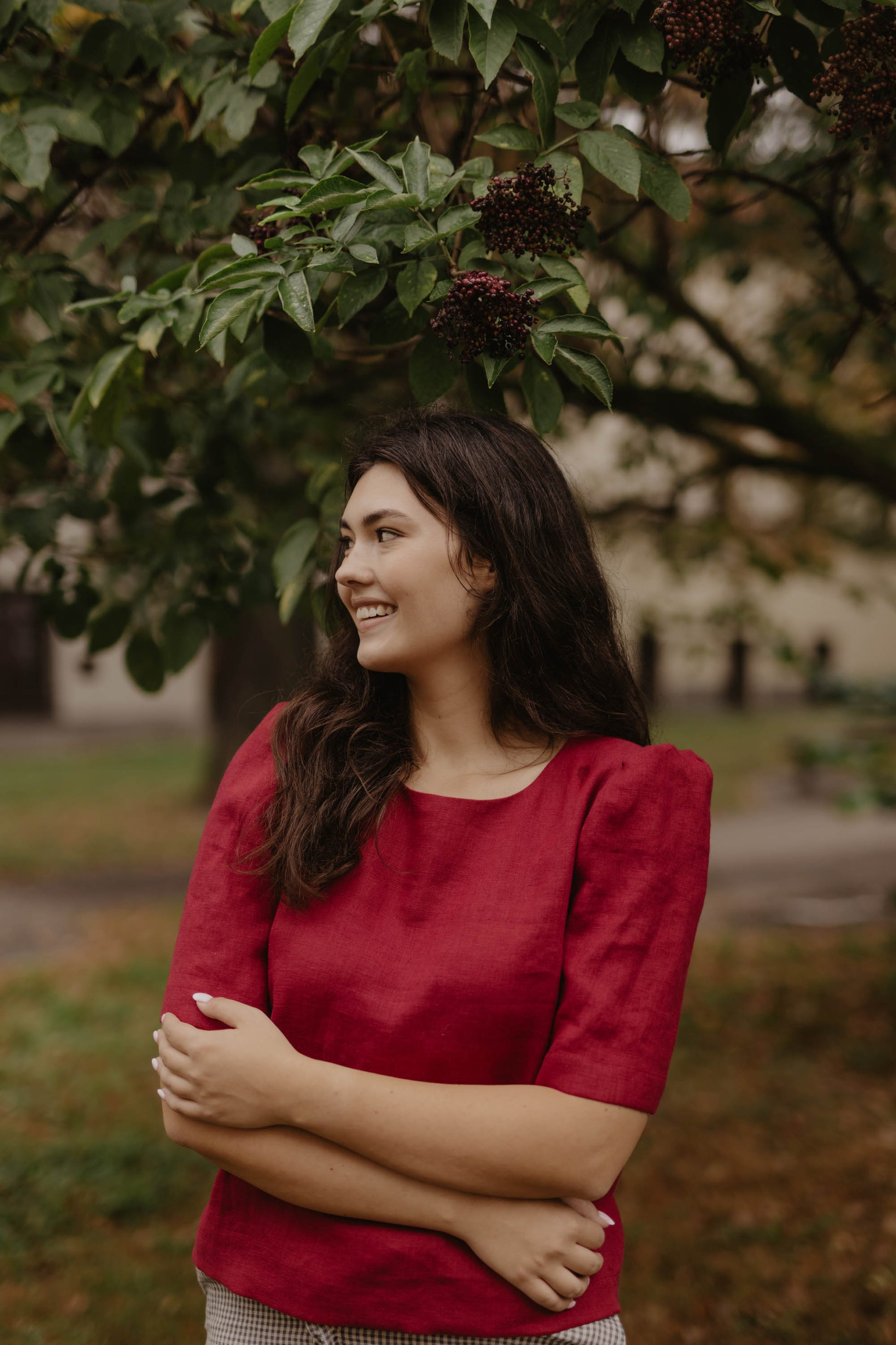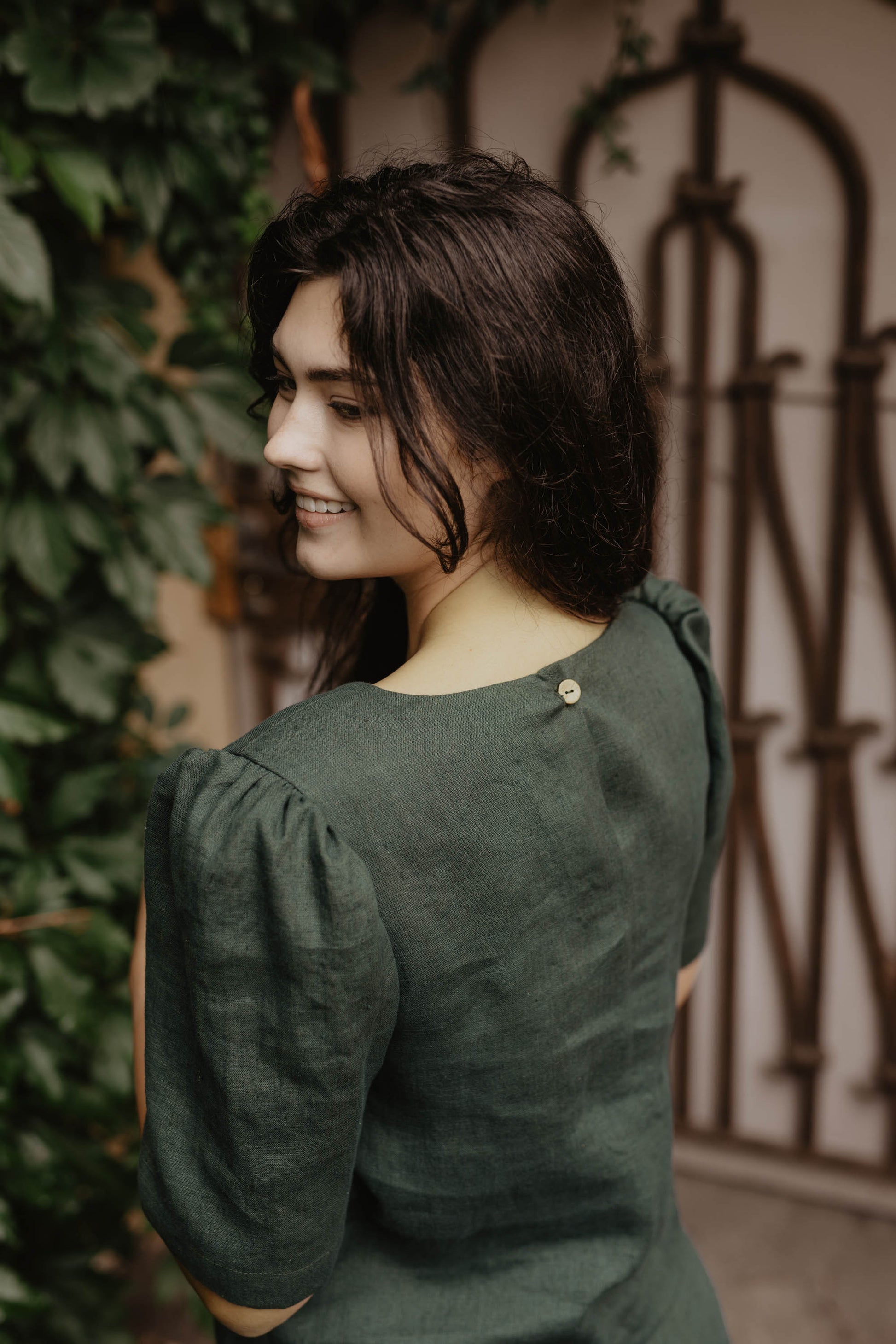 100% linen top for women. Beautiful puff sleeves for extra detail. Perfect for any occasion, from going to the office, to a date or a day (or night) out in the city. Pair it with jeans to look more casual or linen pants for a more special occasion. Available in creamy white, berry red, forest green & dark checks.